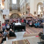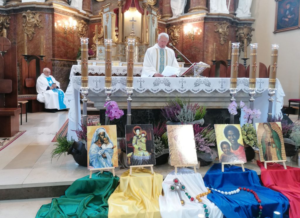 Kolejnym punktem porządku dnia była konferencją wygłoszona przez ks. Adama Wińskiego. Jej wiodącym tematem była wiara jako ciągłe nawracanie się będące procesem, codziennym wysiłkiem by być bliżej Boga i być bardziej ludzkim oraz potrzeba nawrócenia się w człowieczeństwie osoby wierzącej. Innym motywem referatu było powołanie świętych. Są oni po to, aby nas zawstydzać. Święci są też po to, aby nas rozpalać, abyśmy bardziej kochali Boga i Kościół. Starzec do mnicha – możesz więcej, jeżeli chcesz możesz cały stać się ogniem. Nie kopcić, nie tlić się, ale stać się ogniem, płomieniem, co rozpala innych – podkreślił mówca. Jako przykład ilustrujący treści wykładu oraz przykład do naśladowania przywołana została postać bł. Pauliny Jarikot. Kaznodzieja wymienił najważniejsze momenty z jej życia aby zobrazować jak stawała się ogniem, jak płonęła miłością do Boga, Matki Najświętszej i Kościoła Katolickiego konkretnego, obecnego w ludzie Bożym, którego przecież sobie nie wybrała, ale który został jej dany. Z osobą bł. Pauliny wiąże się początek Żywego Różańca oraz Papieskiego Dzieła Rozkrzewiania Wiary. Różaniec i misja to dwa nieodłączne elementy naszej duchowości. Drugi człowiek jest dla nas darem. Te sentencje były zwieńczeniem misyjnego wymiaru wystąpienia ks. Adama. Wizualnym tłem dla treści głoszonych przez kaznodzieję była pełna symboliki dekoracja przed ołtarzem posoborowym. Kolory płócien, dużego różańca i świec oraz różne wizerunki Matki Bożej symbolizowały kontynenty i obszary świata.