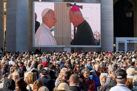 Dziś (5 listopada) uczestnicy pielgrzymki wzięli udział w audiencji generalnej na placu św. Piotra. W jej trakcie biskup Jan Piotrowski spotkał się z papieżem Leonem XIV.