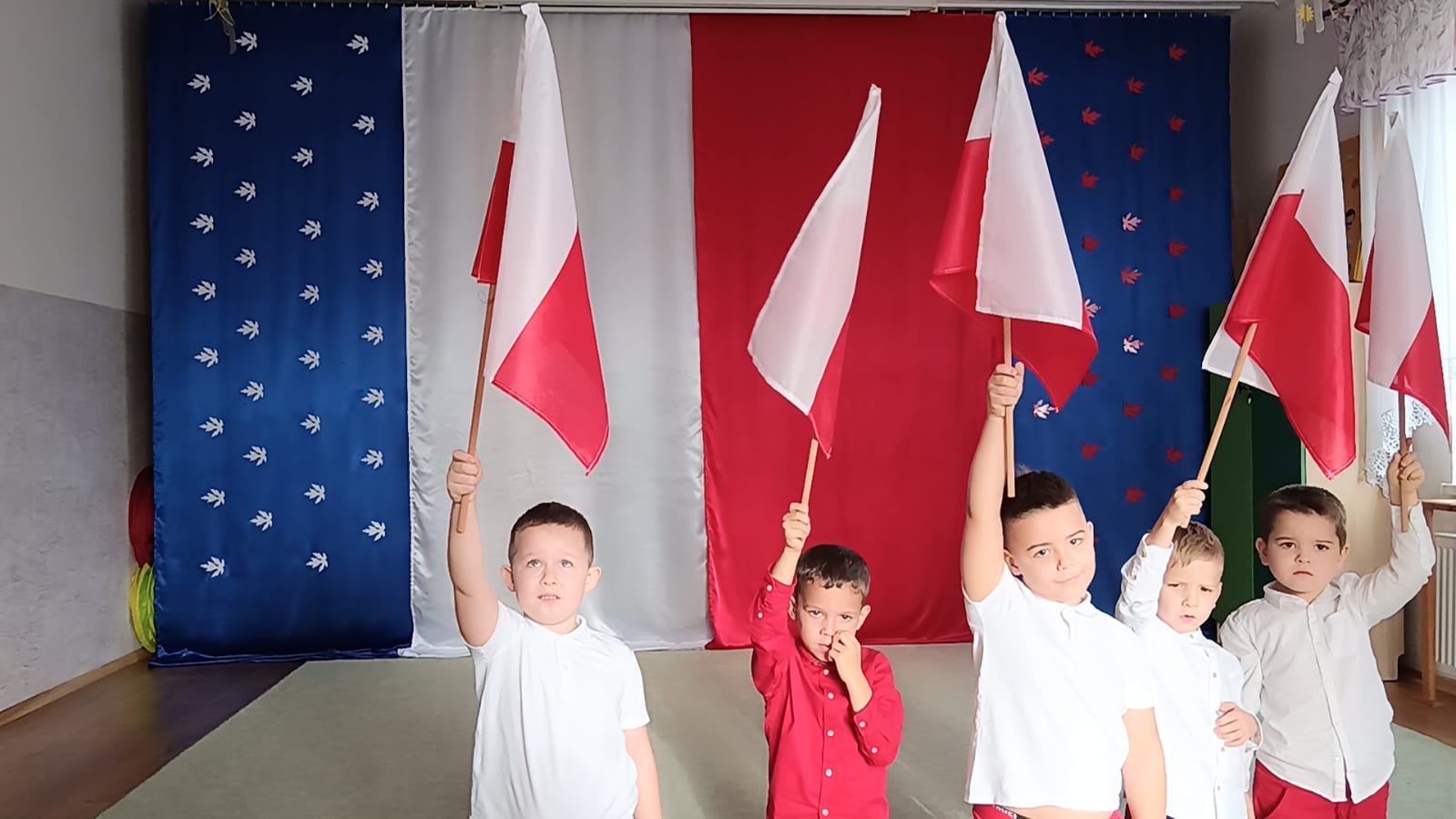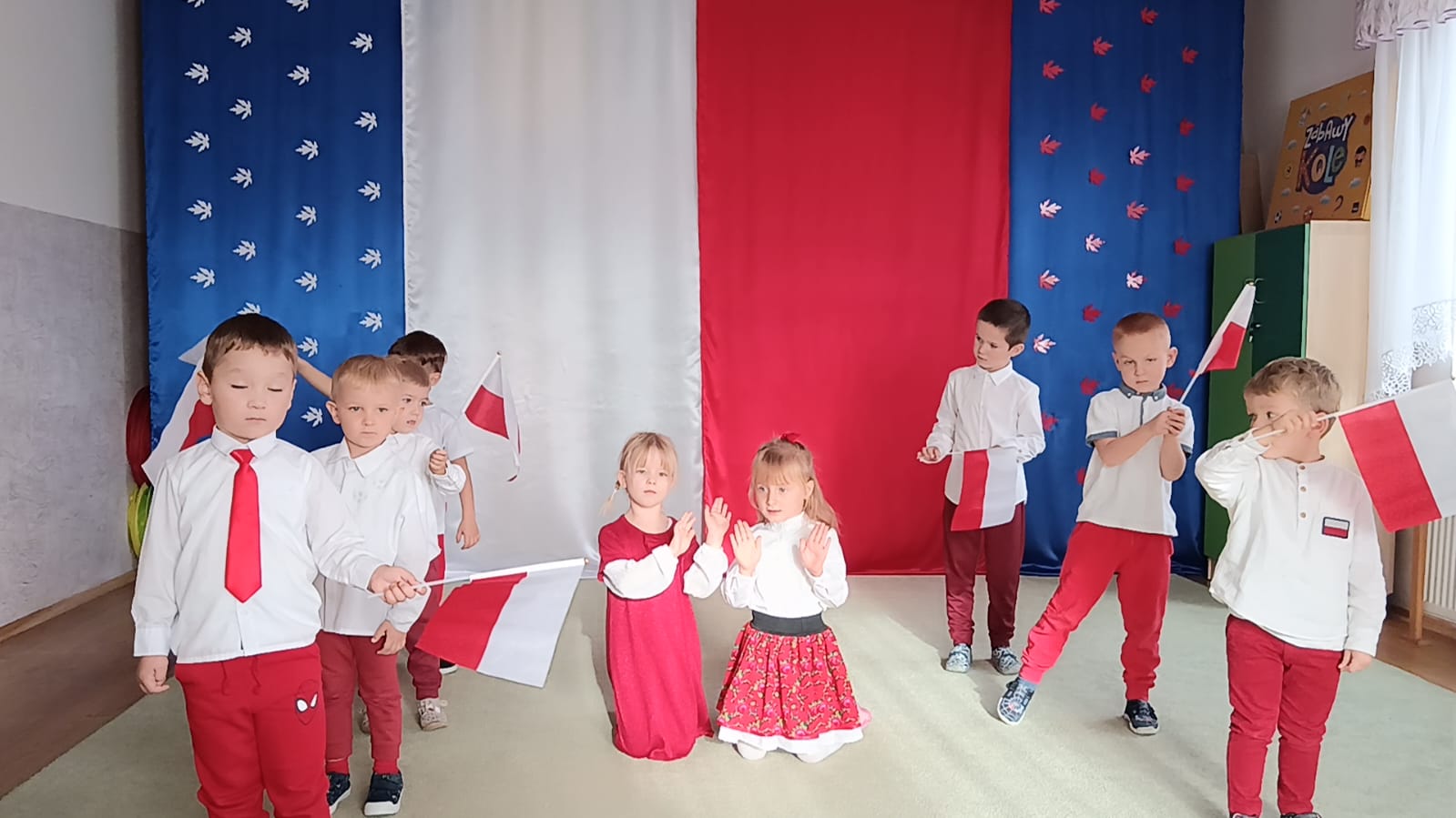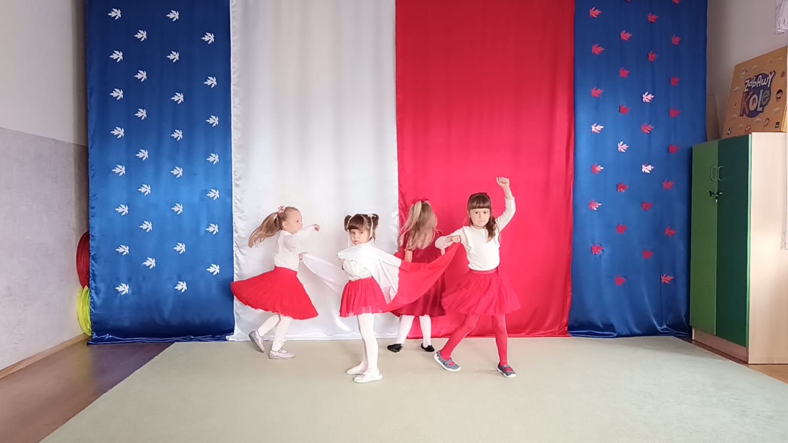 ,, 11 listopada to taka ważna data „. 7 listopada Przedszkolaki z Ochronki w Kosienicach świętowały Święto Niepodległości 11 listopada, zatańczyły z flagami, zaśpiewały piosenki i wyrecytowały wiersz na cześć Naszej Polski. Każde dziecko wie, iż 11 listopada o Polskę walczyli nie tylko ci duzi ale też ci mali.