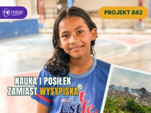 Projekt 882 – NAUKA I POSIŁEK ZAMIAST WYSYPISKA powstał dla 119 dzieci zamieszkałych wokół wysypiska śmieci. „Wielu ich rodziców pracuje tam segregując odpady” – opowiada ks. Sławek. „Kiedy wychodzą z domu, nie widzą zielonej Amazonii, ale hałdy śmieci, dym z palonych odpadów i krążące sępy. To naprawdę przerażający obraz”.
