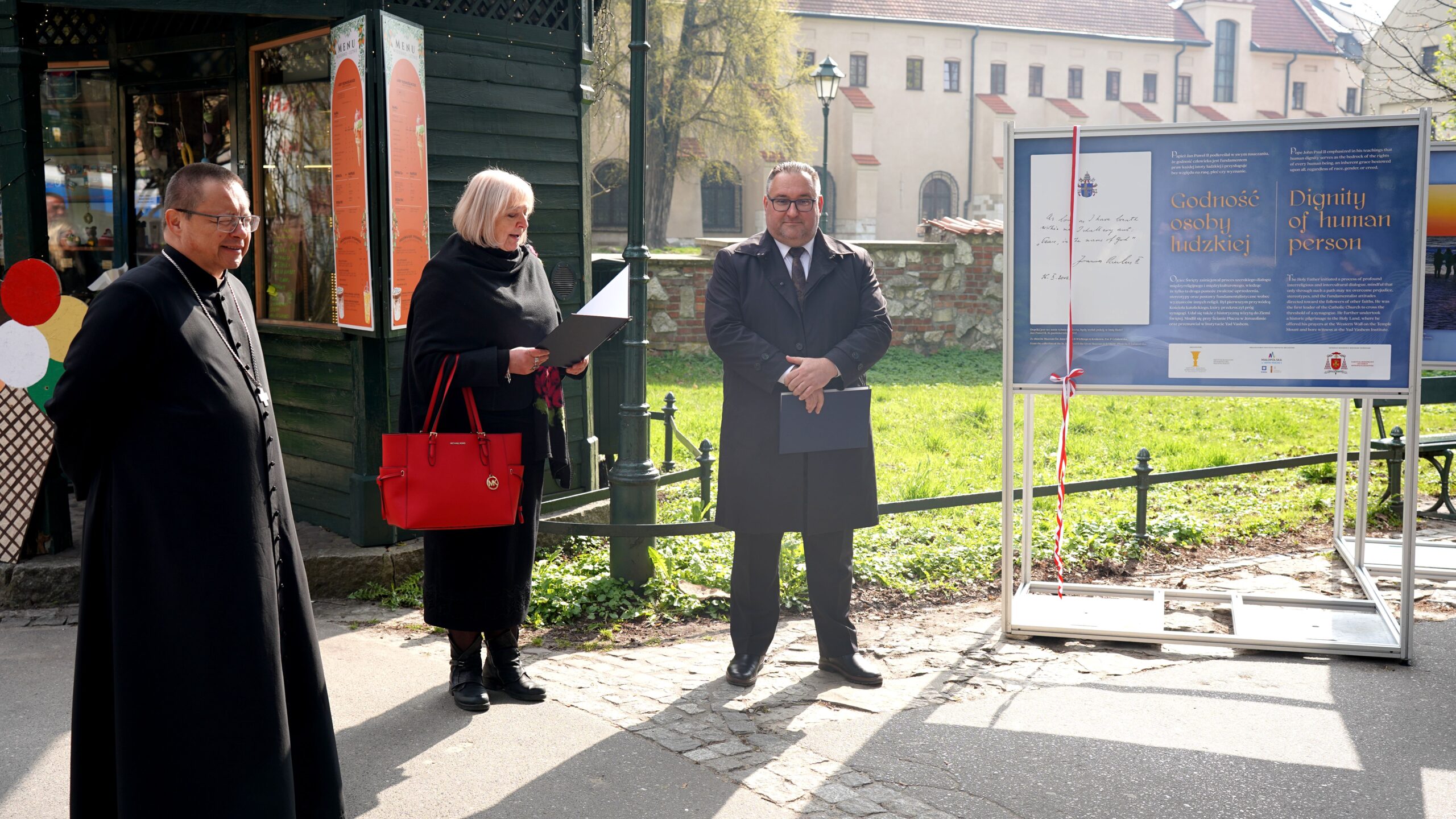 10 kwietnia 2026 roku na Plantach Krakowskich odbyło się uroczyste otwarcie wystawy „Godność osoby ludzkiej”.