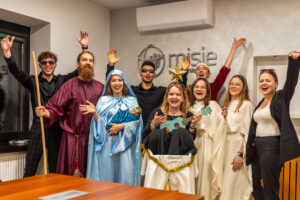 Później, kolędując i spędzając wspólnie czas, oglądaliśmy jasełka przygotowane przez wolontariuszy aspirujących do wyjazdu na misje długoterminowe. Mogliśmy zobaczyć, co jest w życiu najważniejsze, a przy okazji śmiechu było co niemiara! Zostaliśmy również obdarowani przez Stevołaja i cudnego Anioła Feliciena prezentami. Na koniec dnia uczestniczyliśmy w Adoracji, podczas której tradycyjnie odczytywaliśmy listy wolontariuszy obecnych na misjach. Powierzyliśmy swoje marzenia Matce Bożej, pisząc do niej list i odczytując go w sercu.