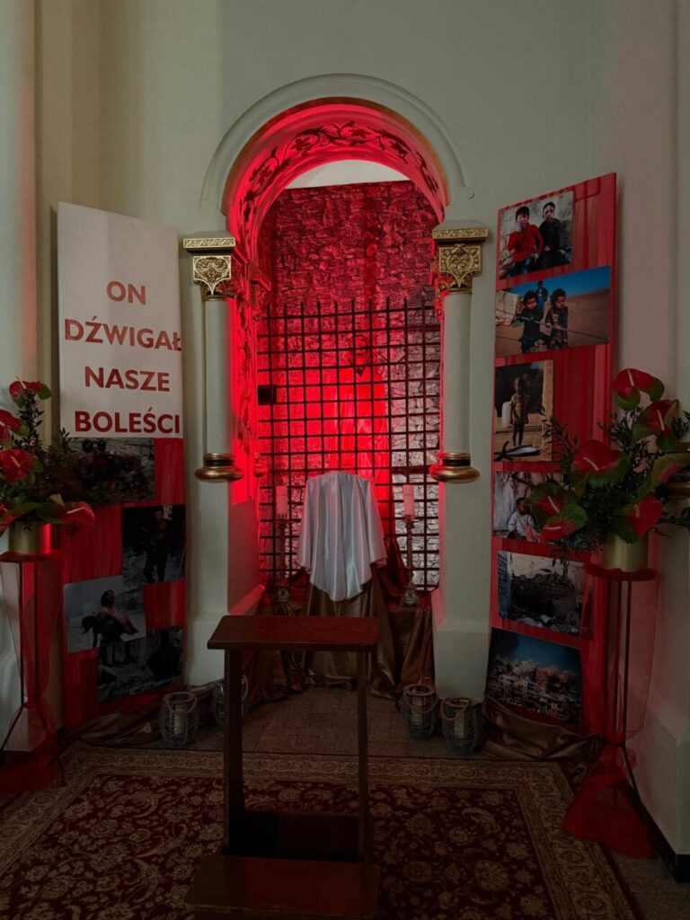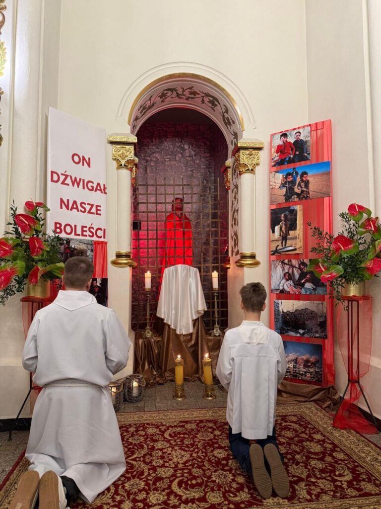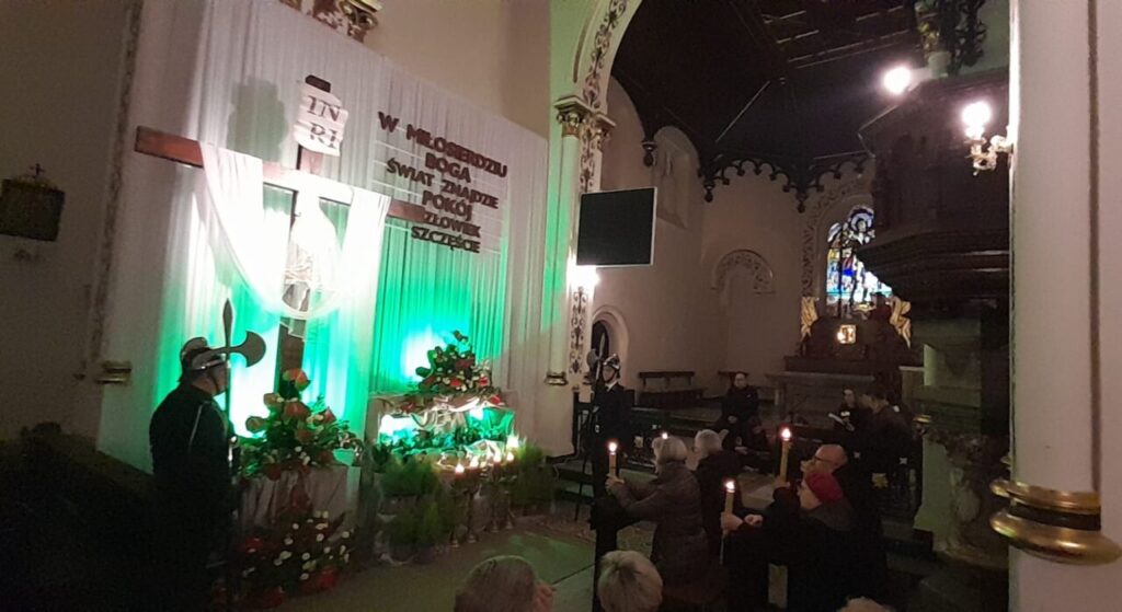 Po wysłuchaniu opisu męki ucałowaliśmy krzyż – znak naszego zbawienia. Padliśmy na kolana przed Panem złożonym do grobu. Czekamy na Jego zmartwychwstanie.