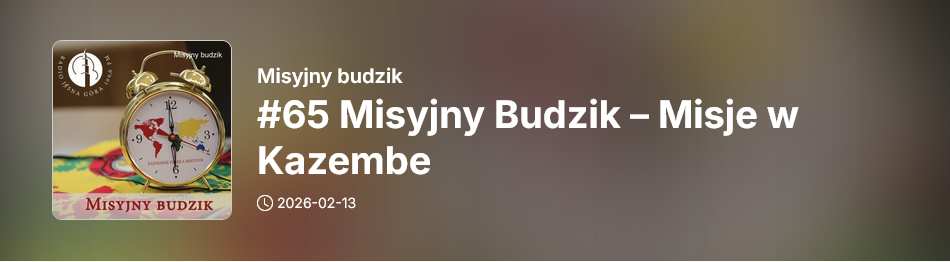 13 lutego na antenie Radio Jasna Góra wyemitowano kolejną audycję z cyklu Misyjny Budzik. Tym razem gościem programu była Emilia Smagorowicz, która opowiedziała o swoim doświadczeniu wolontariatu misyjnego w Zambii.