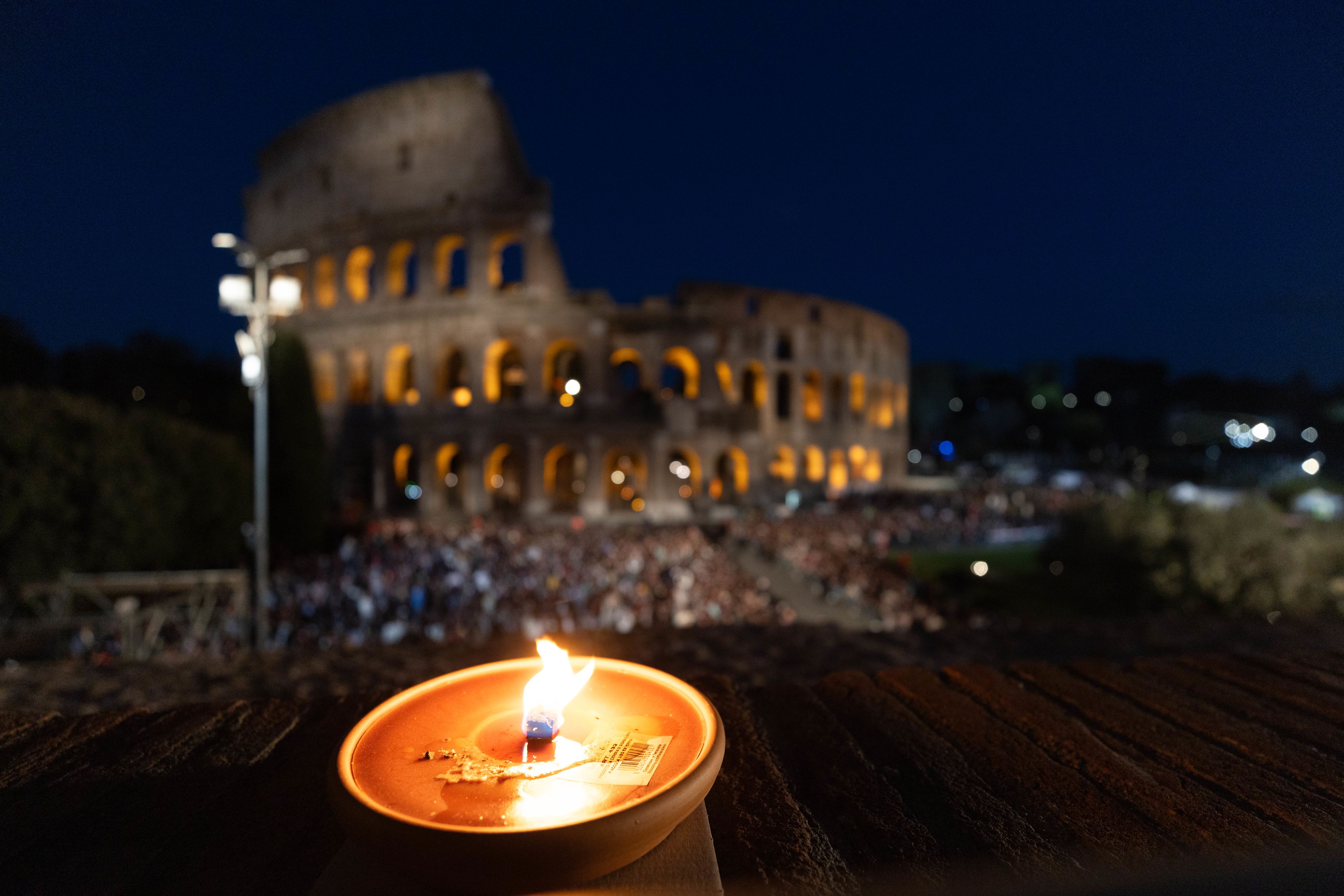 Migocząca świeca w Koloseum w Rzymie w Wielki Piątek, 3 kwietnia 2026 r. | Zdjęcie: Daniel Ibáñez/EWTN News