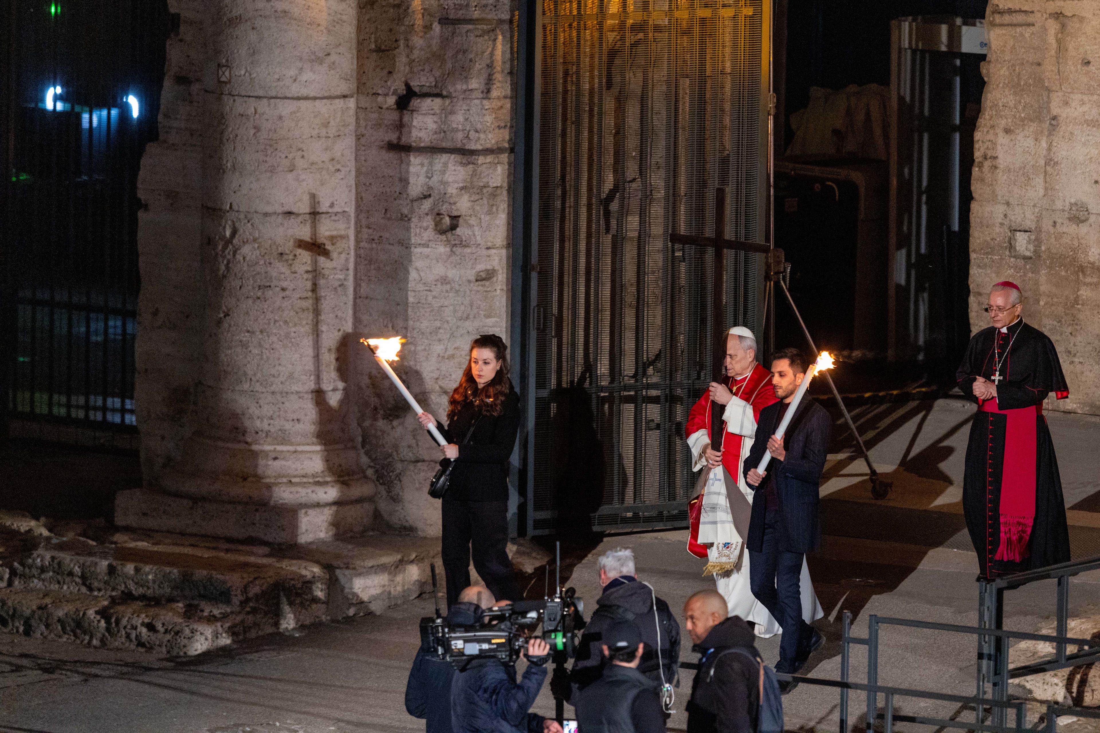 Papież osobiście niósł krzyż przez każdą stację Drogi Krzyżowej w Wielki Piątek w Koloseum . Po raz pierwszy od czterech lat postać Papieża była obecna na amfiteatrze.